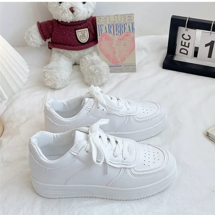 Trendy Leather Thick-Soled White Sneakers for Women(Product Code: 1111)